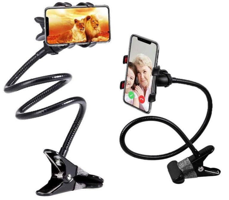 Flexible Mobile Tabletop Stand, Metal Built, Heavy Duty Foldable Lazy Bracket Clip Mount Multi Angle Clamp for All Smartphones (Pack of 1)