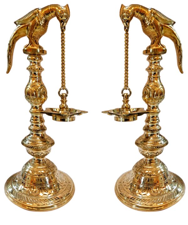 Shop Parrot Vilakku Brass Lamps handcrafted for spiritual rituals and home décor. 100% pure brass, traditional design, perfect for pooja, gifting & Diwali decor. Free shipping available.